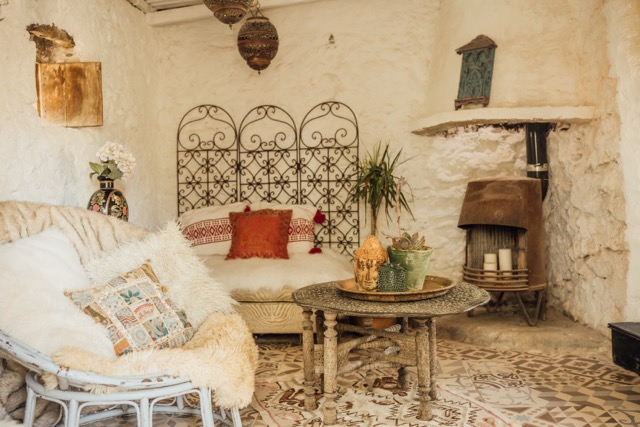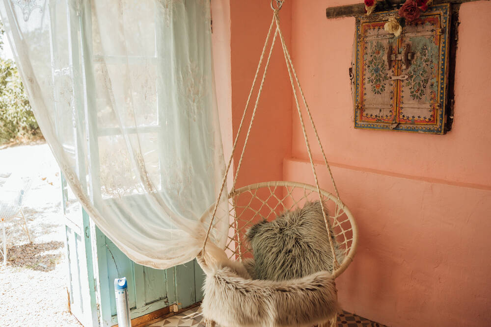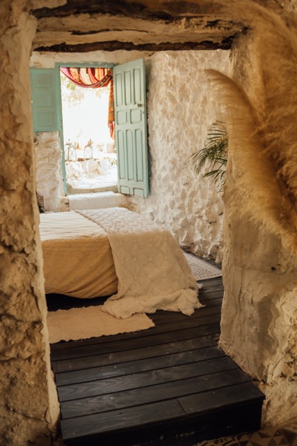 Your treehouse hideaway. Hidden among the olive and poplar trees, The Lovers’ Loft is our newest and most intimate retreat. Perched above the barranco, it feels like your own private world: candlelit interiors, a dreamy bed with views through the trees, and a little deck perfect for morning coffee.