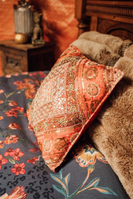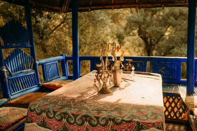 Your treehouse hideaway. Hidden among the olive and poplar trees, The Lovers’ Nook is our newest and most intimate retreat. Perched above the barranco, it feels like your own private world: candlelit interiors, a dreamy bed with views through the trees, and a little deck perfect for morning coffee.