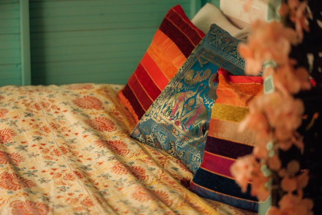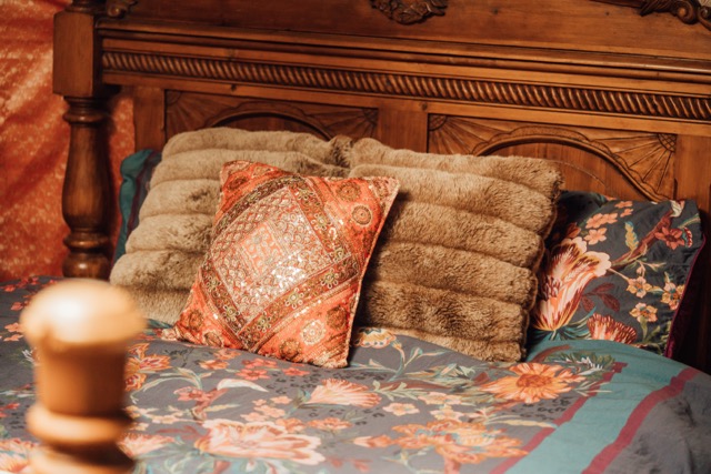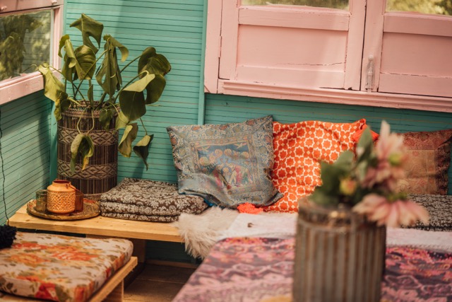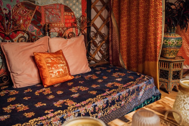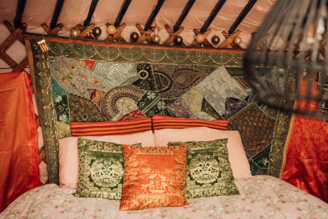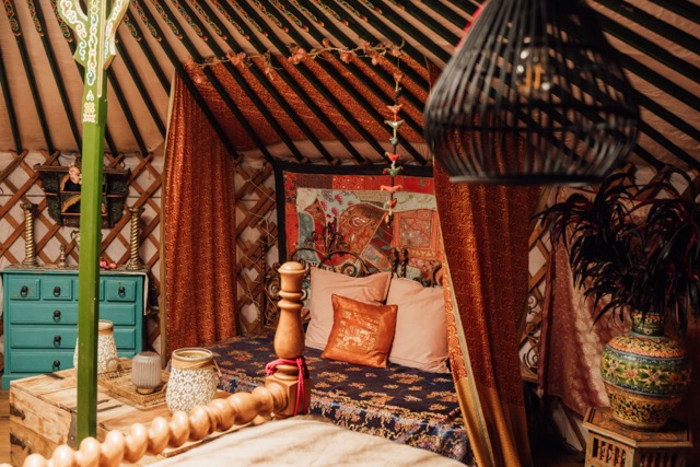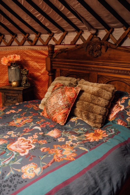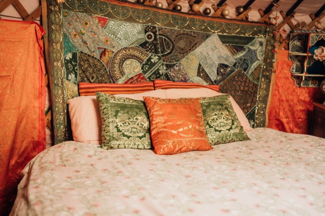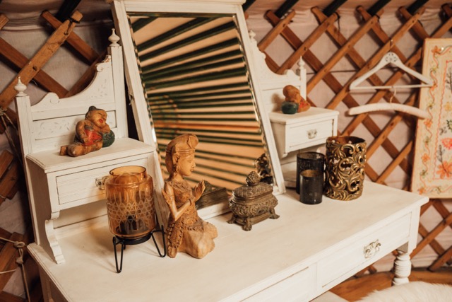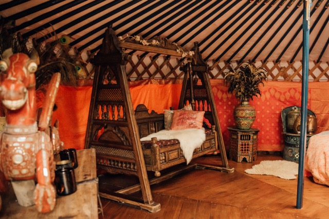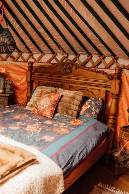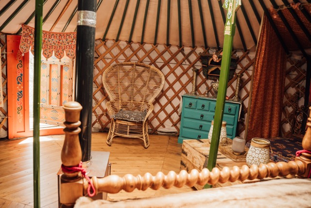 Outside, you’ll find a comfy outdoor bed, sofa and a little swing. Lola has her own compost loo and washbasin and shares the outdoor shower area with Yurt Pomegranate.