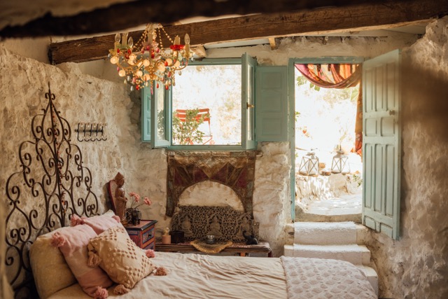 Your treehouse hideaway. Hidden among the olive and poplar trees, The Lovers’ Loft is our newest and most intimate retreat. Perched above the barranco, it feels like your own private world: candlelit interiors, a dreamy bed with views through the trees, and a little deck perfect for morning coffee.